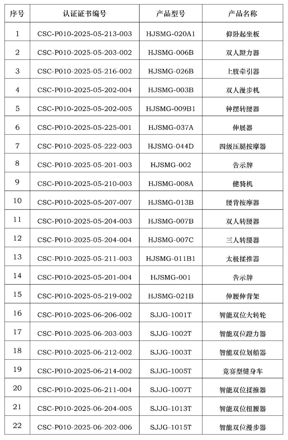山东世纪星文体器材有限公司,证书明细如下(共25张):