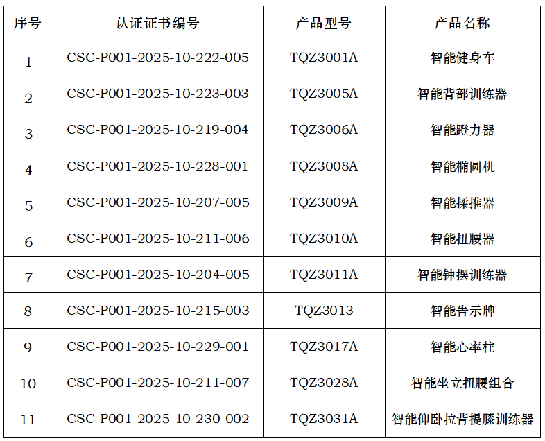 山东泰山体育器材有限公司,证书明细如下(共11张):