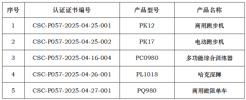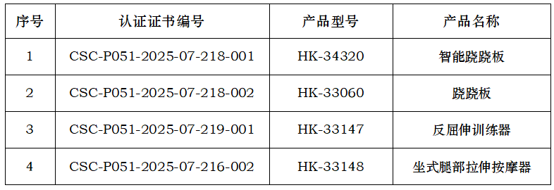 近日,山东世纪星文体器材有限公司、河北启帆教学设备制造有限公司、山东泰山体育器材有限公司、澳瑞特体育产业股份有限公司、山东英吉多健康产业有限公司、武汉昊康体育产业发展有限公司,获得由中体联(北京)认证服务有限公司颁发的产品认证证书,证书明细如下,特此公告。