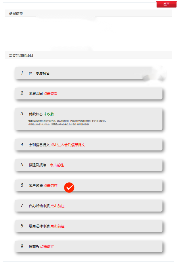 2、登录成功后,在进入页面“需要完成的项目”一栏中点击第六项——“客户邀请”按键。
