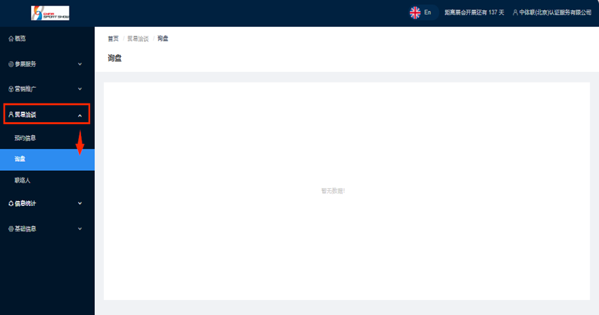 步骤4:点击“贸易洽谈”→“询盘”,查看观众提交的产品采购需求或咨询信息。