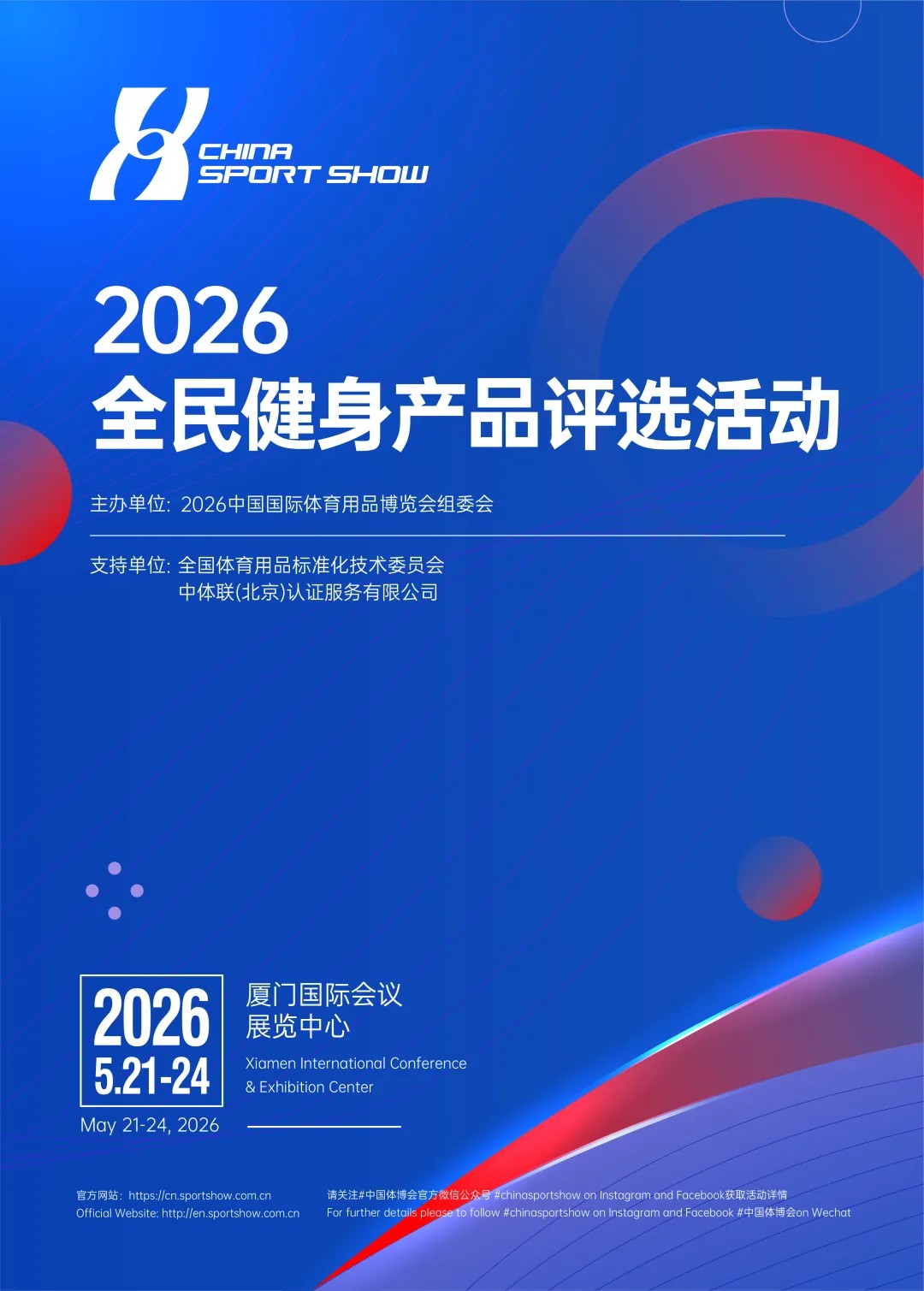 “2026全民健身产品评选活动”结合多项国家标准、行业标准、团体标准围绕全民健身器材与设施打造的产品评选活动。(具体的活动通知、报名方式、评选范围等内容,敬请关注中国体博会微信公众号及官网近期发布的公告通知。)