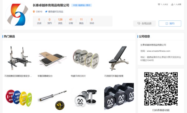 图丨长泰卓越体育用品有限公司“展商秀”展示页面