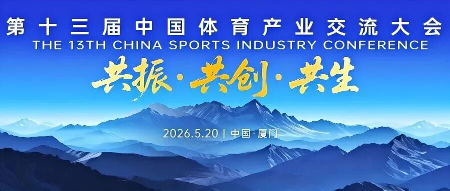 2026年5月20日下午,由中国体育用品业联合会主办的第十三届中国体育产业交流大会将在在福建省厦门市盛大启幕!本届大会以“共振・共创・共生”为年度主题,诚邀政、产、学、研各界精英齐聚鹭岛,共探体育产业高质量发展之路,共享行业新机遇,携手共启中国体育产业新篇章!