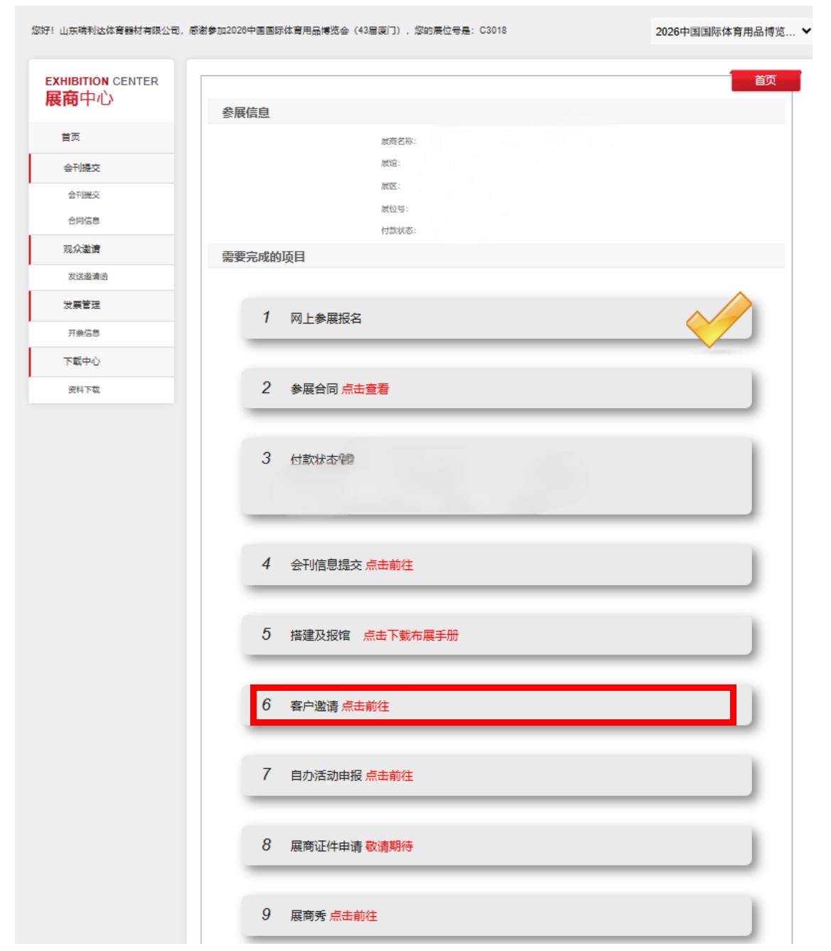 详情查阅:《2026中国体博会展商邀约境内外观众操作说明②“展商秀”平台企业邀请函》