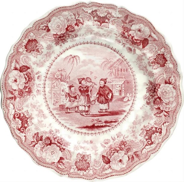 清代人物打羽毛球红釉瓷盘