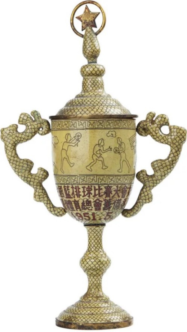 1951年5月全国篮排球比赛大会女子篮球亚军珐琅奖杯