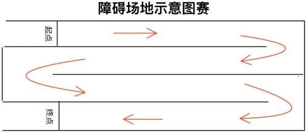 1、场地布置:起跑盒主线至首桩线8米,共17个桩,桩距120cm,终点线距离尾桩80cm,总比赛距离为:8m+1.2mx16+0.8m=28米。