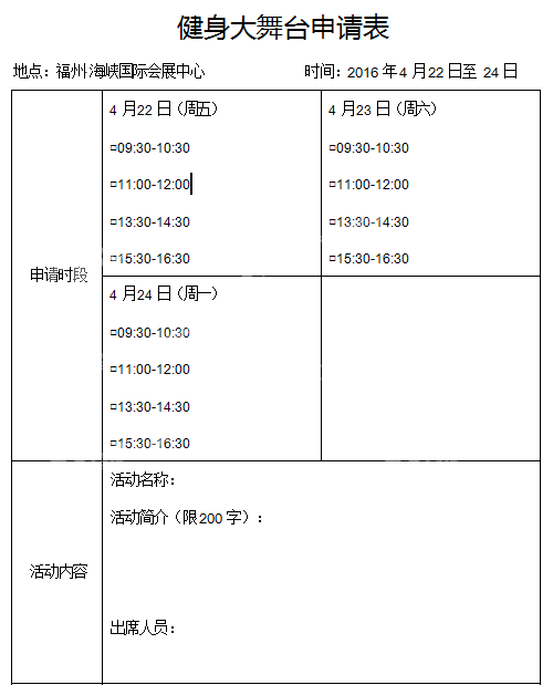 健身大舞台申请表